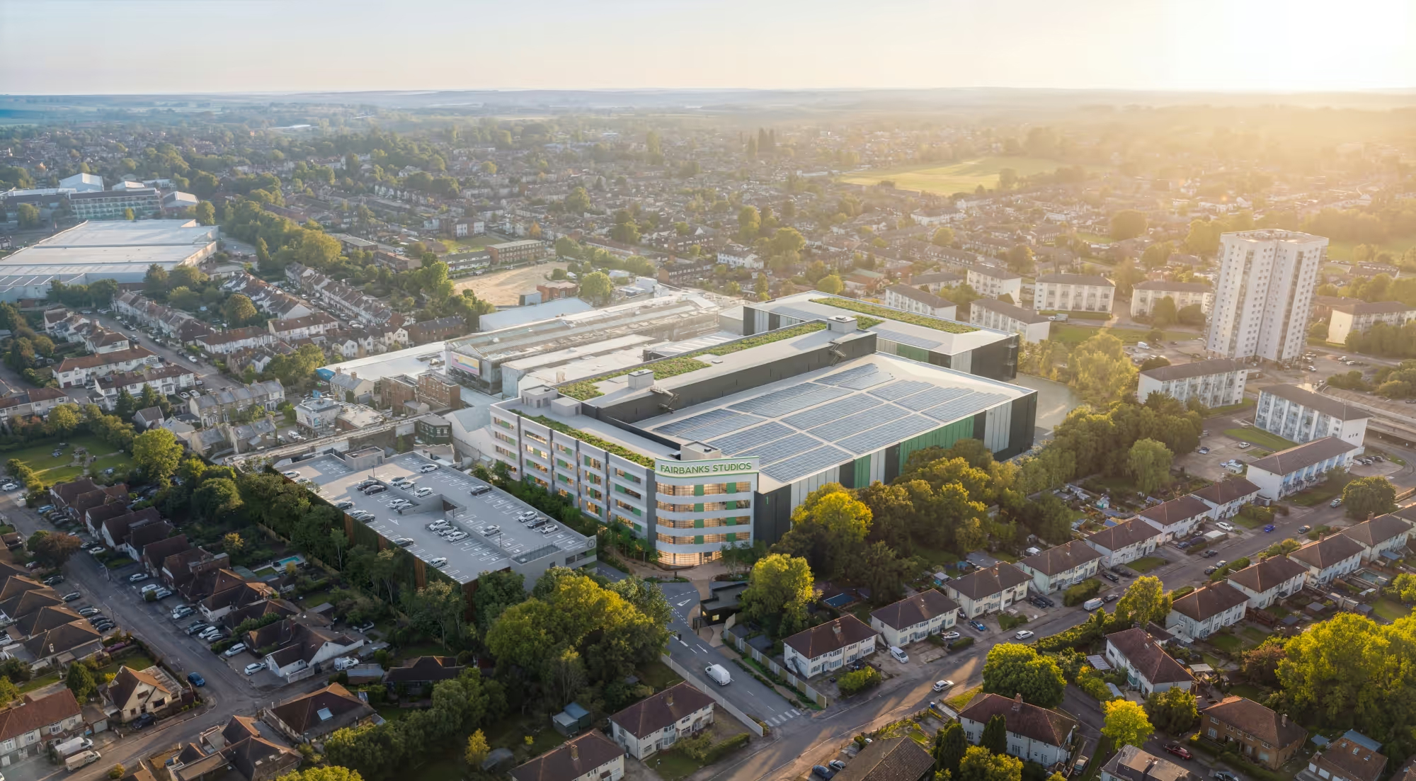Fairbanks Studios is a new vision for the historic Elstree site, led by BNP Paribas Asset Management and Oxygen Studios. We’re committed to creating long-term, community-focused studio infrastructure that supports creativity, careers, and local growth, with a strong emphasis on sustainability and environmental responsibility. Designed to target BREEAM Outstanding and Albert Studio Sustainability Standard Outstanding.